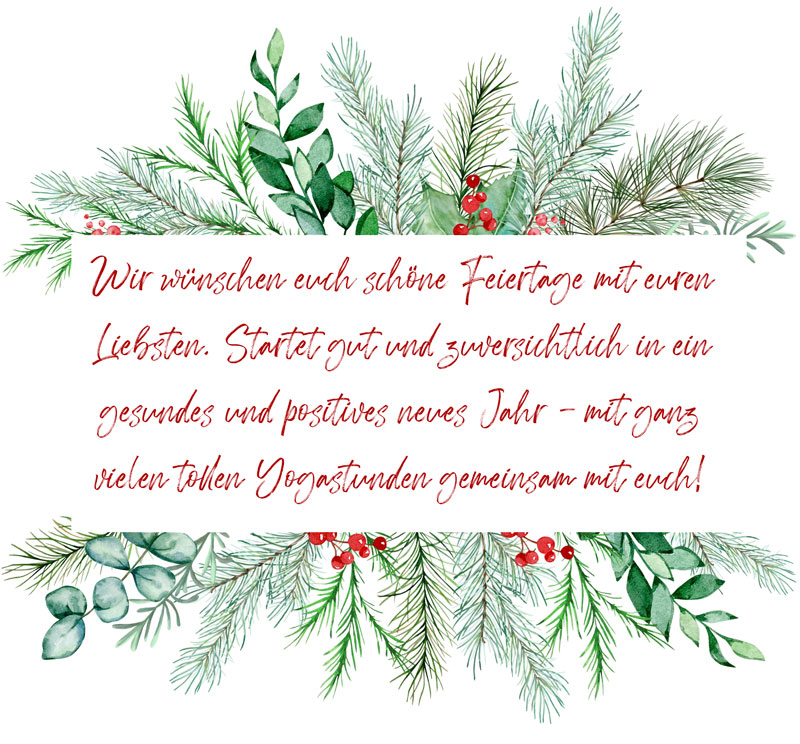 - Anschließend ist der YogaRaum vom 23.12. bis 26.12. geschlossen.